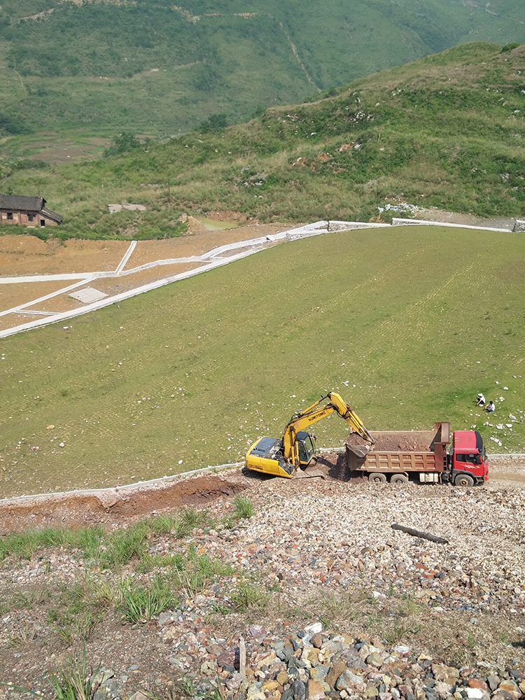 我司为了满足地方政府打造生态旅游景点规划要求,就地取材,采用毛石混凝土重力式挡土墙结构对废渣堆进行原位固定稳定。结构表面光滑平整,线条流畅;因受场地条件限制,对坡度大于1:3的废渣堆采用网格梁护坡工艺,既达到渣堆稳定要求,又形成一道美丽的景观;将原设计的撒播草籽绿化变更为铺设草皮绿化,风景更显优美。采用场地局部覆膜防渗、封场全覆盖覆膜防渗工艺,有效的控制了重金属渗滤液的外泄,实现了由治理前的无序排放到治理后的有序集中收集处置的治理目标。