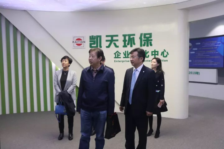 滕建礼参观了航天凯天文化展厅、中试基地,胡坤山介绍了航天凯天环保的企业文化、发展历史、展品的各个原理以及公司业务。并对农村生活污水治理、农村垃圾治理和建筑垃圾处理等设备和技术表示浓厚兴趣,对于公司拳头产品整体厂房治理技术表示赞赏。并召开了座谈会,胡坤山对航天凯天环保整体工作情况进行了汇报。与会领导就环保市场现状、经营模式进行了充分交流。