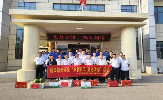 最后,郑自儒一行为衡水凯天全体职工送上了夏日防暑清凉慰问品。郑自儒表示航天凯天的发展离不开每位员工的辛苦付出,公司目前发展还处在一个关键时期,希望大家在工作上继续努力,保持干事的劲头,在各自岗位上发挥聪明才智,使公司业绩蒸蒸日上。同时夏季高温,要注意防暑降温相关工作,确保安全生产、平安度夏。