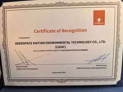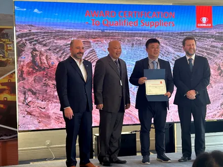 在本次供应商大会上,CODELCO副总裁MAURICIO ACUNA授予PA视讯集团粉尘控制与机电领域的合格供应商资格,并表达了对未来合作的期待。他希望进一步与我司商议包括粉尘治理在内的矿区环境综合治理方案,力争落实并确认相关具体试点项目,全面推进双方的合作。蓝斌男代表我司对CODELCO公司的认可和合作诚意表示感谢。