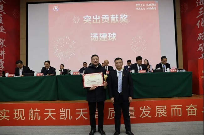 会议表彰了2024年度表现突出的集体和个人。奖项包括“优秀党员突击队” “优秀员工奖” “优秀干部奖” “优秀团队奖” “金牌经营团队奖”以及“突出贡献奖”。获奖代表胡永锋在发言中表示,荣誉属于全体航天凯天人,未来将继续发扬拼搏精神,为公司高质量发展贡献力量。