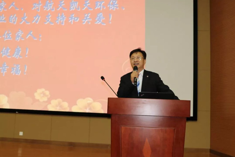 湖南航天管理局副局长、航天凯天环保董事长、党总支书记宋卫武出席活动并讲话,宋卫武代表公司对一直以来支持员工工作的家属表示了最热烈的欢迎和最衷心的感谢,他讲解了中国航天日的来历,深情讲述了我国第一颗人造地球卫星上天的故事,希望大家走进航天凯天,了解航天凯天、热爱航天凯天,支持航天凯天,为实现航天梦和美丽中国梦共同奋斗。活动还邀请火箭军驻长沙军事代表室副总代表戴文刚作国防教育报告,航天凯天环保副总裁周波平介绍了公司的发展历程,并展望辉煌的未来,他表示:“航天凯天环保将努力为员工搭建良好的发展平台,让家属放心托付。”